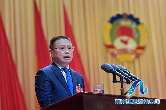 区政协主席甘联君代表政协重庆市南岸区第十届委员会常务委员会,向大会作工作报告 摄影 崔景印
