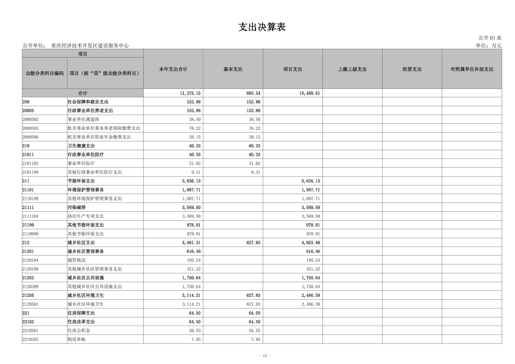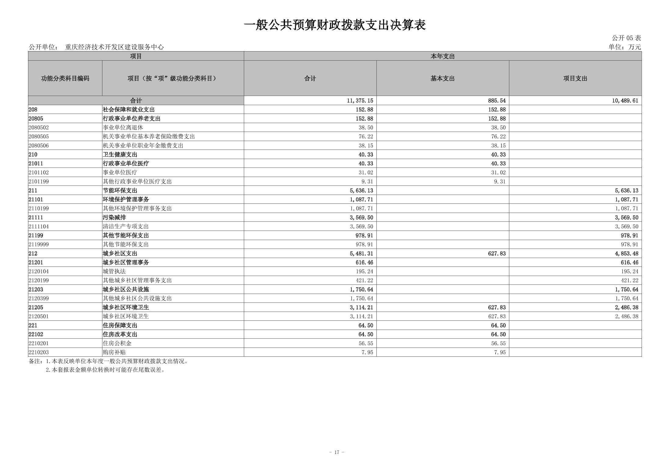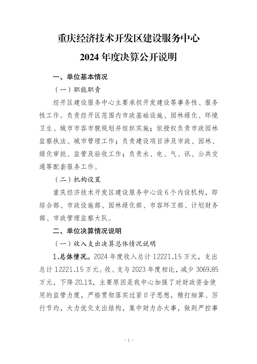 重庆经济技术开发区建设服务中心2024年度决算公开说明