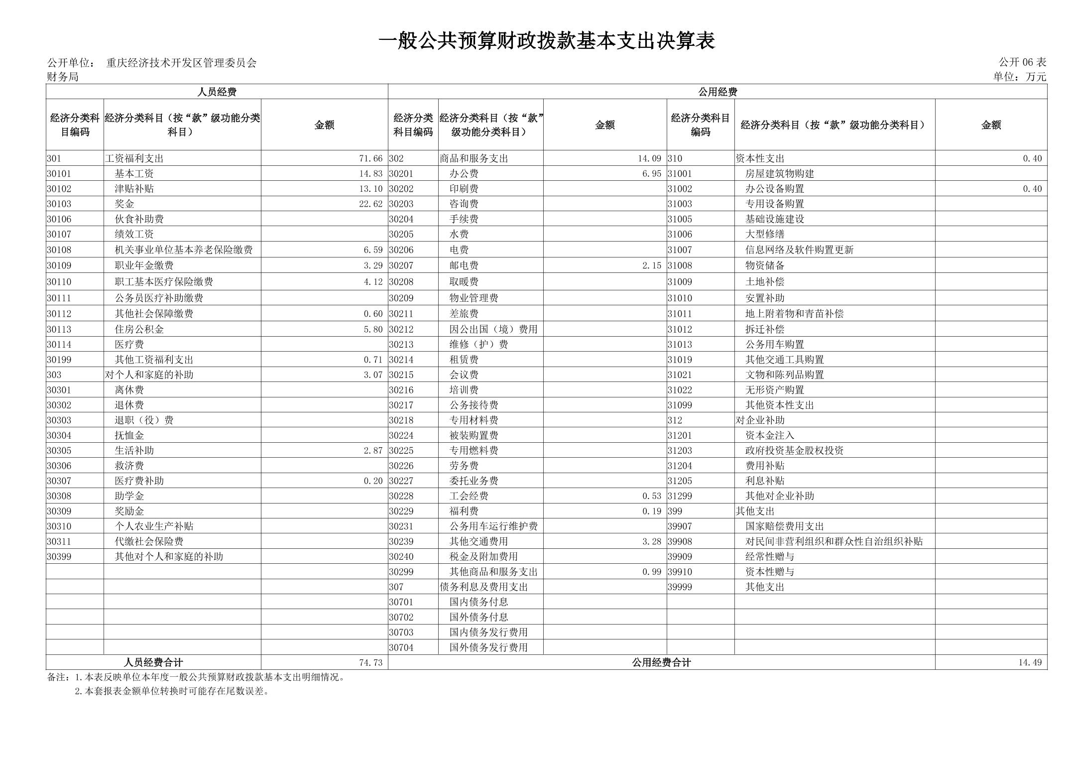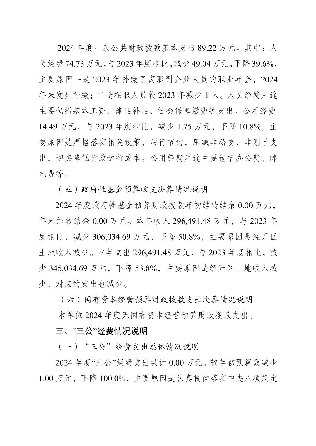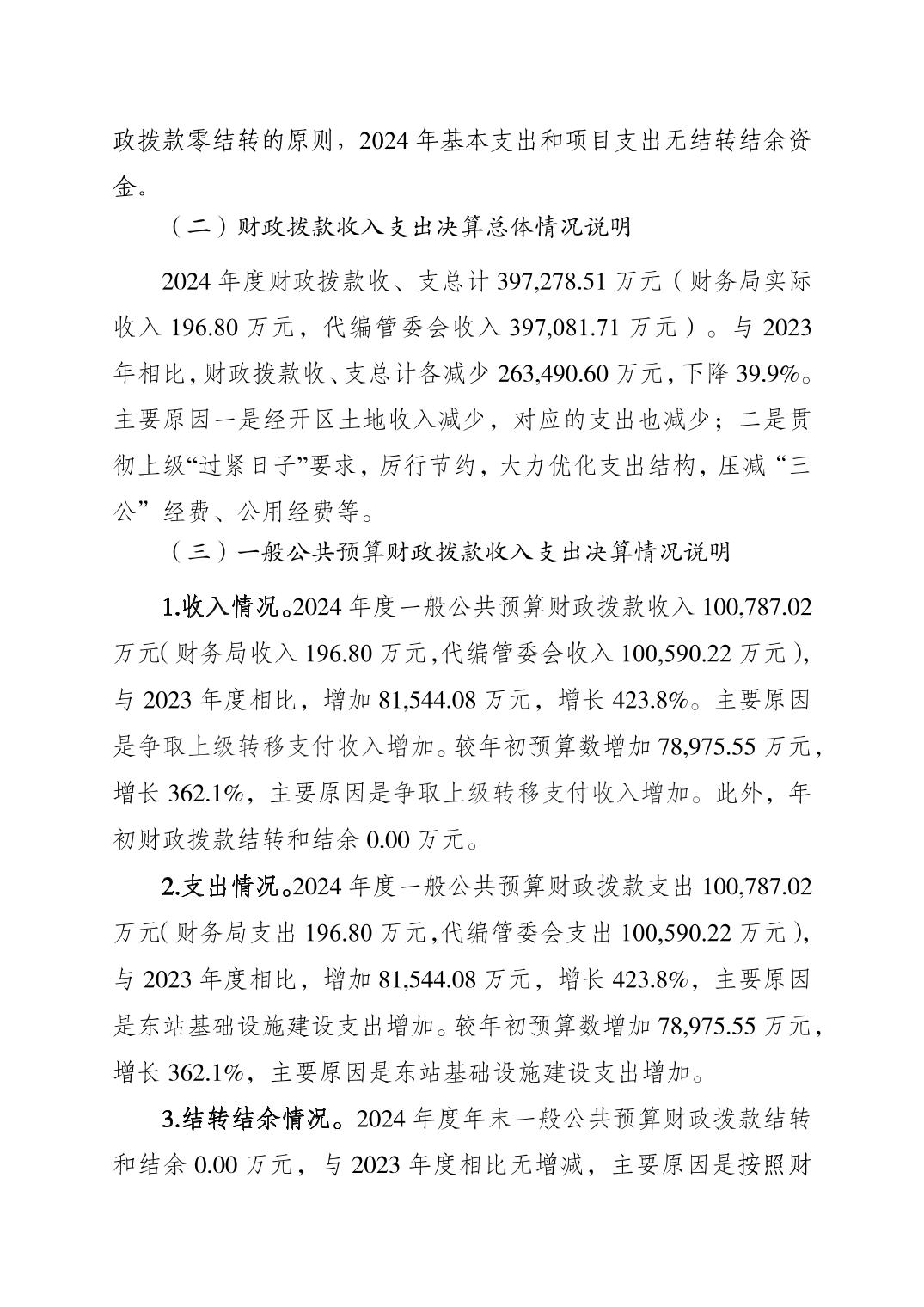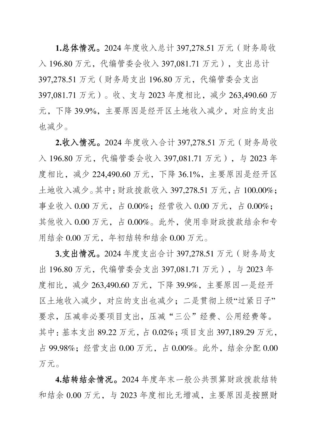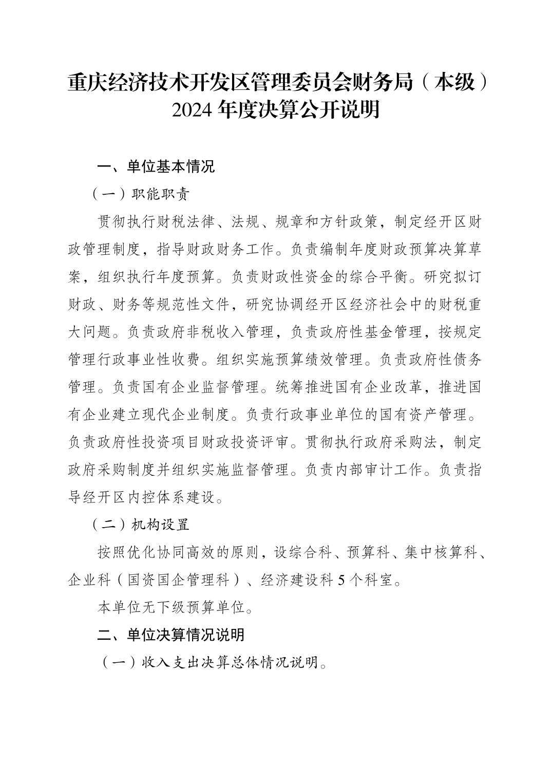 重庆经济技术开发区管理委员会财务局(本级)2024年度决算公开说明