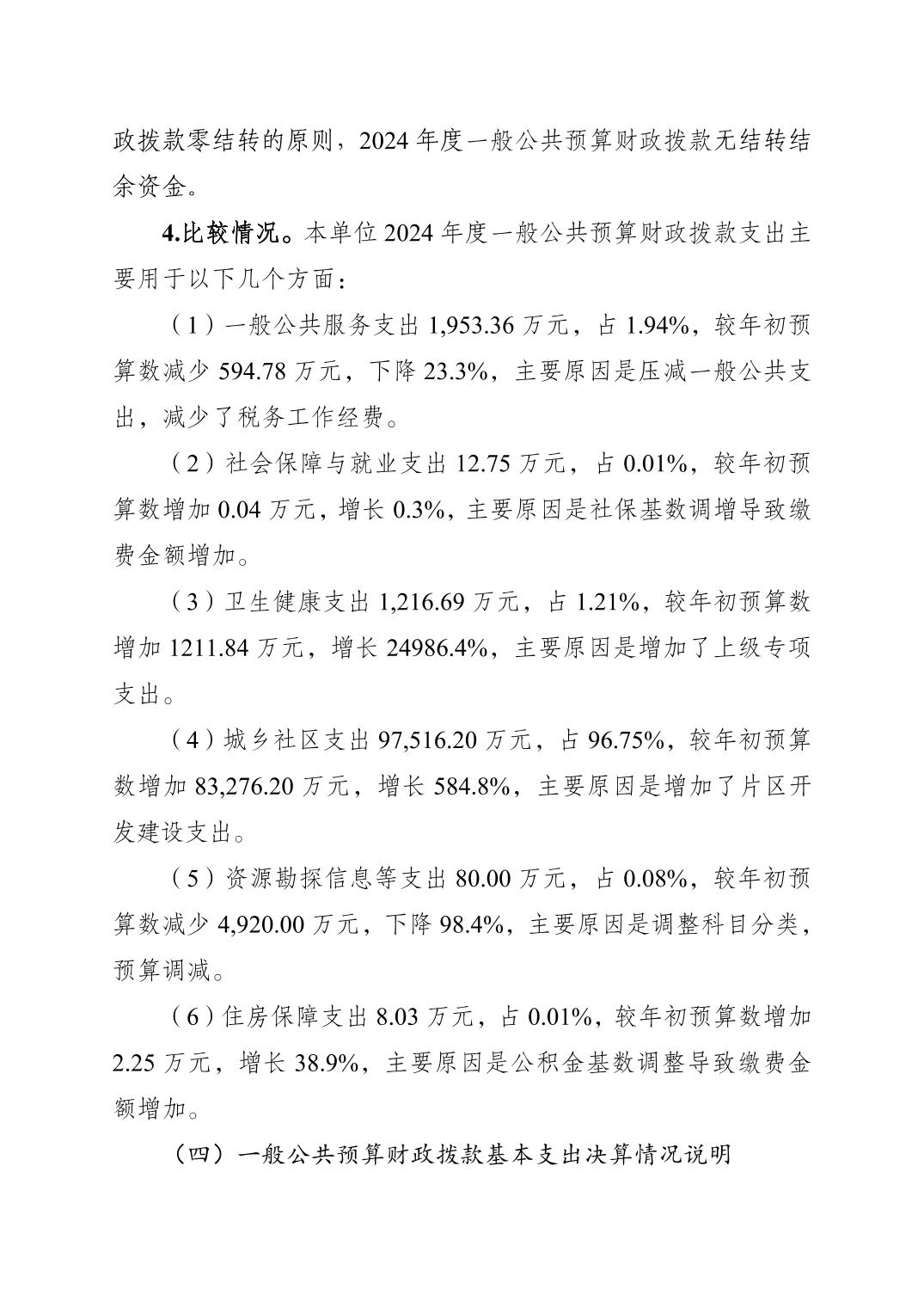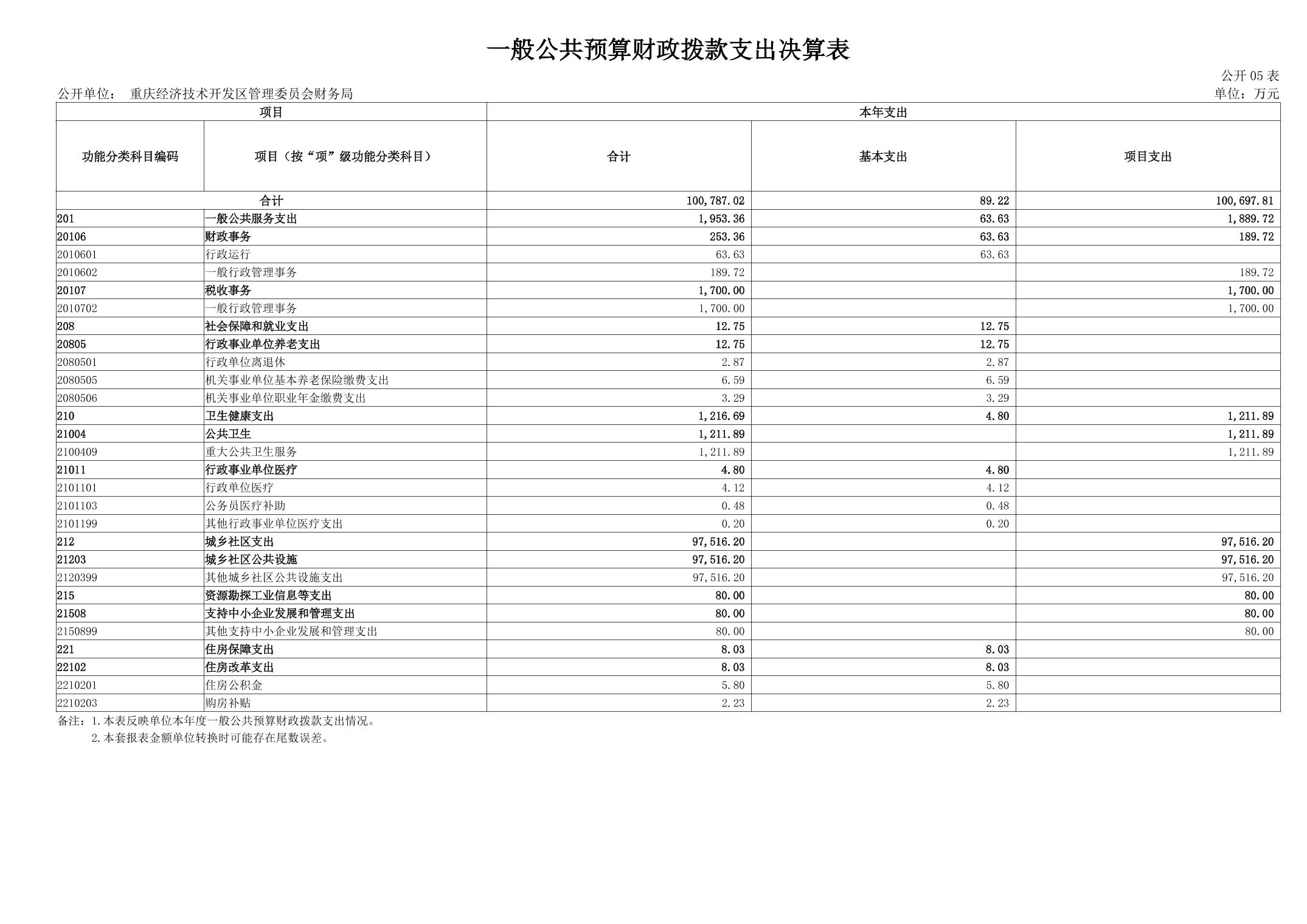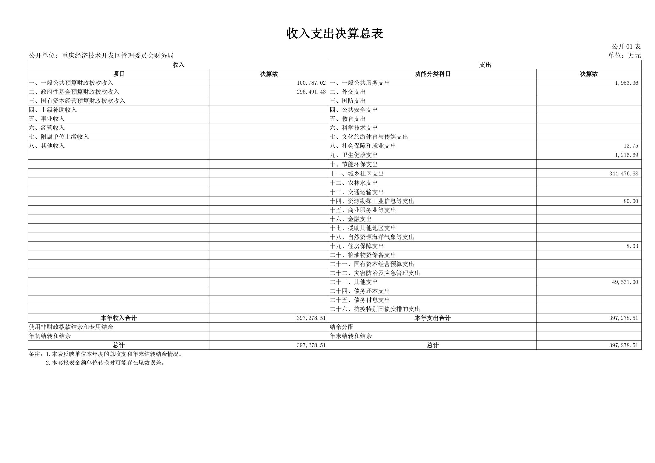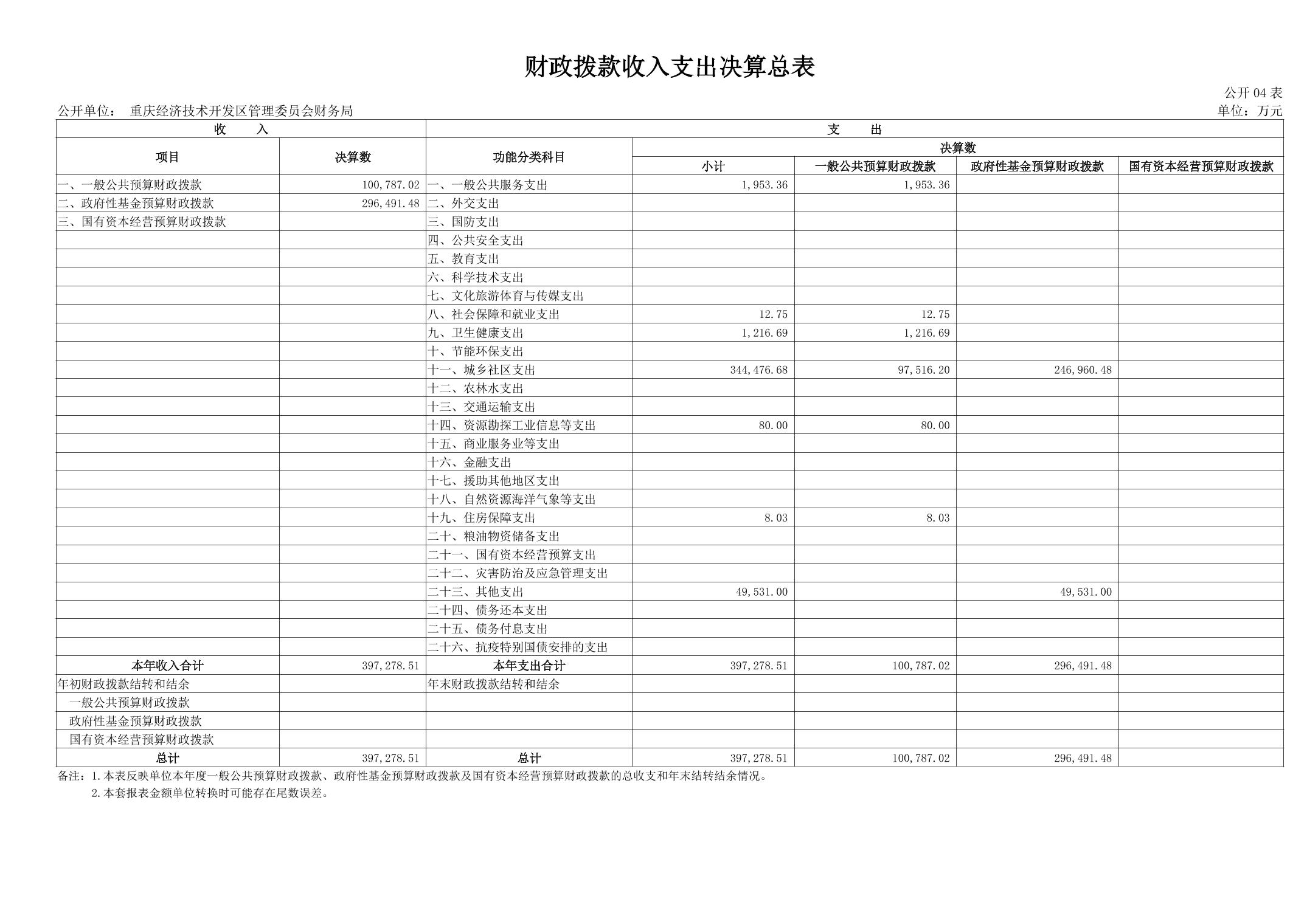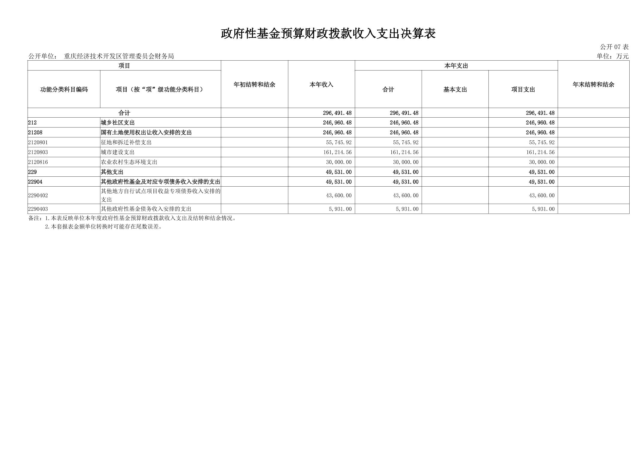 重庆经济技术开发区管理委员会财务局(本级)2024年度决算公开说明