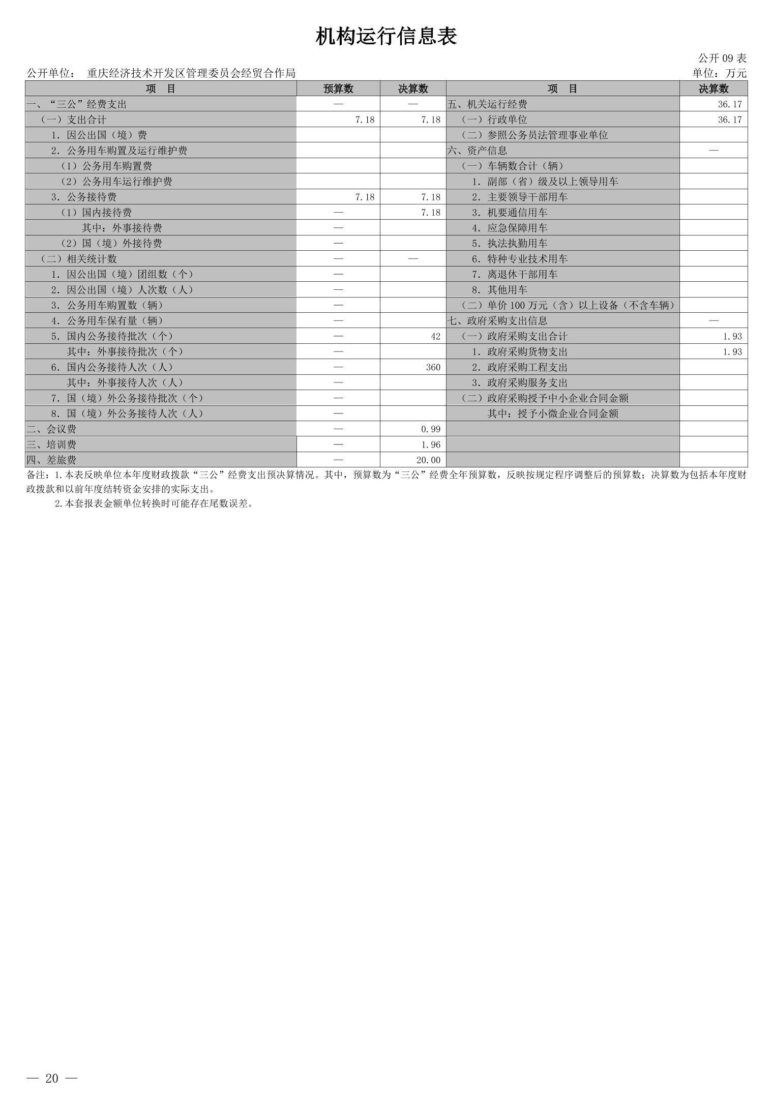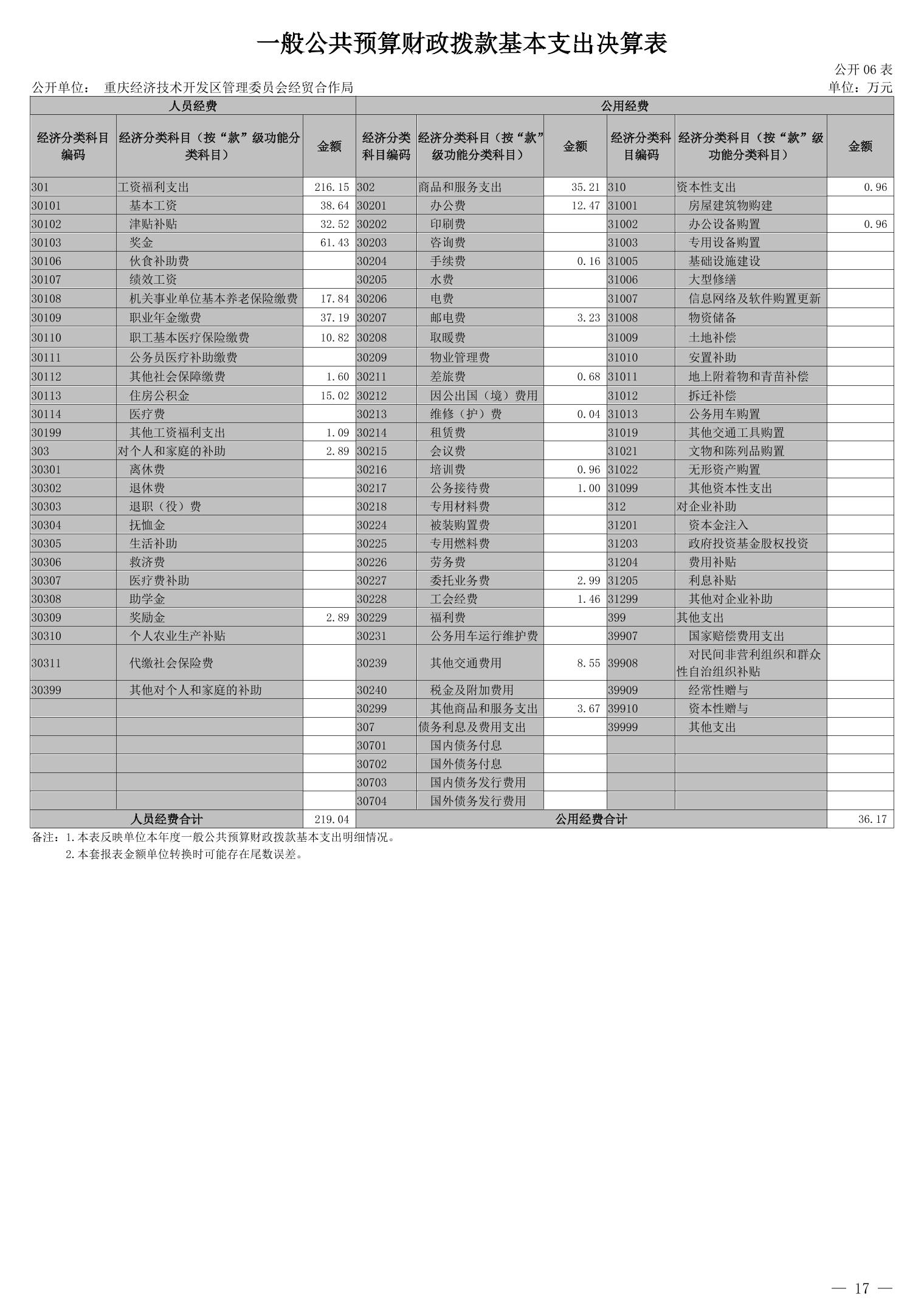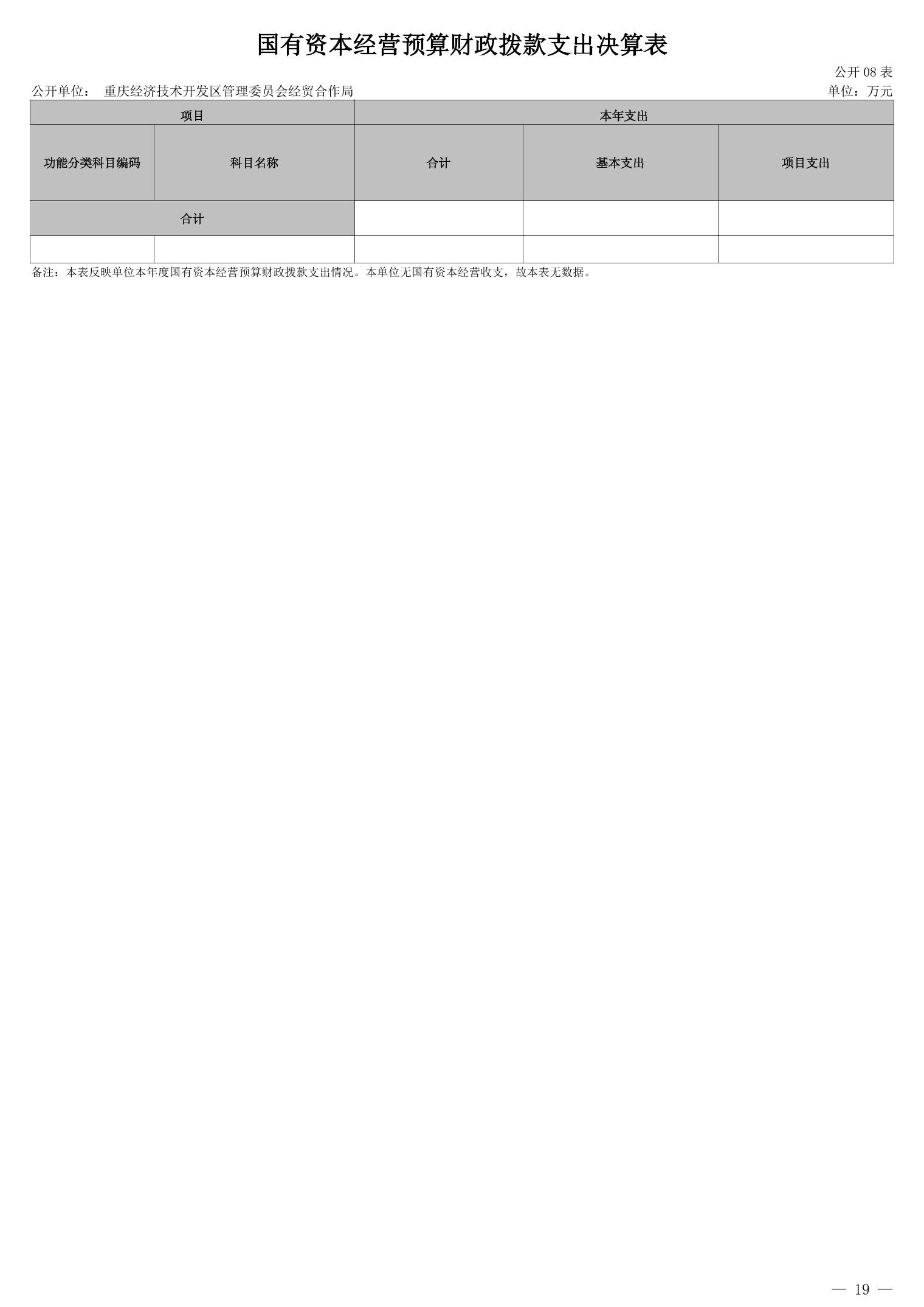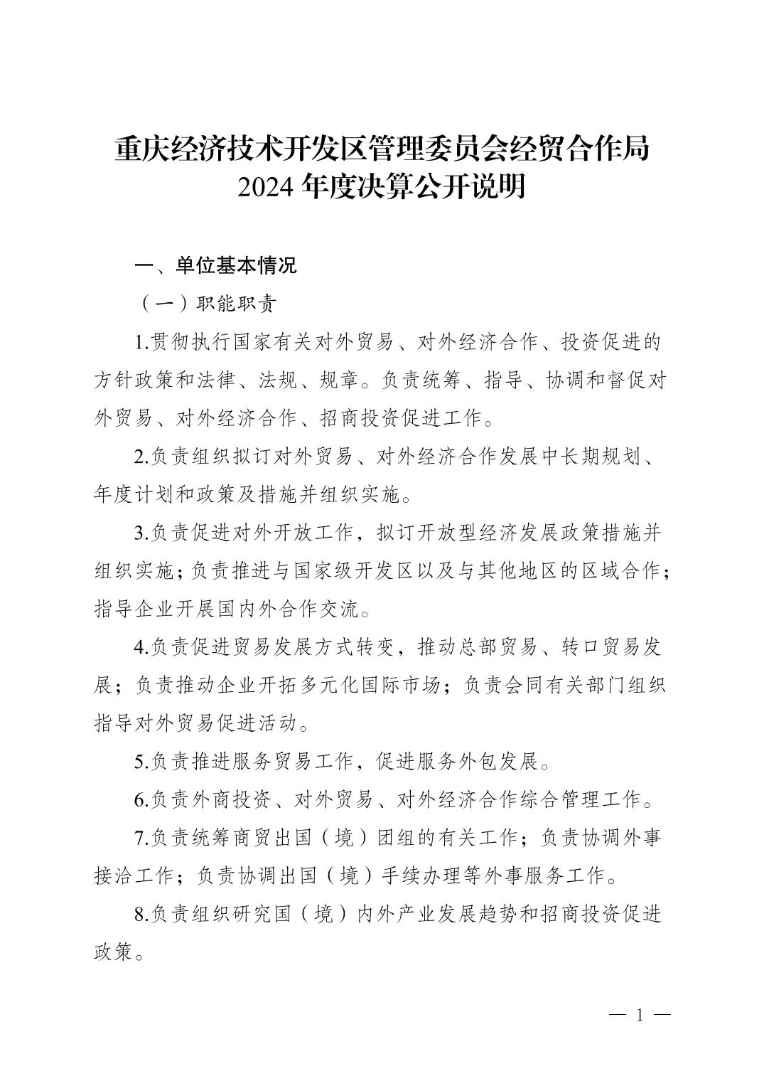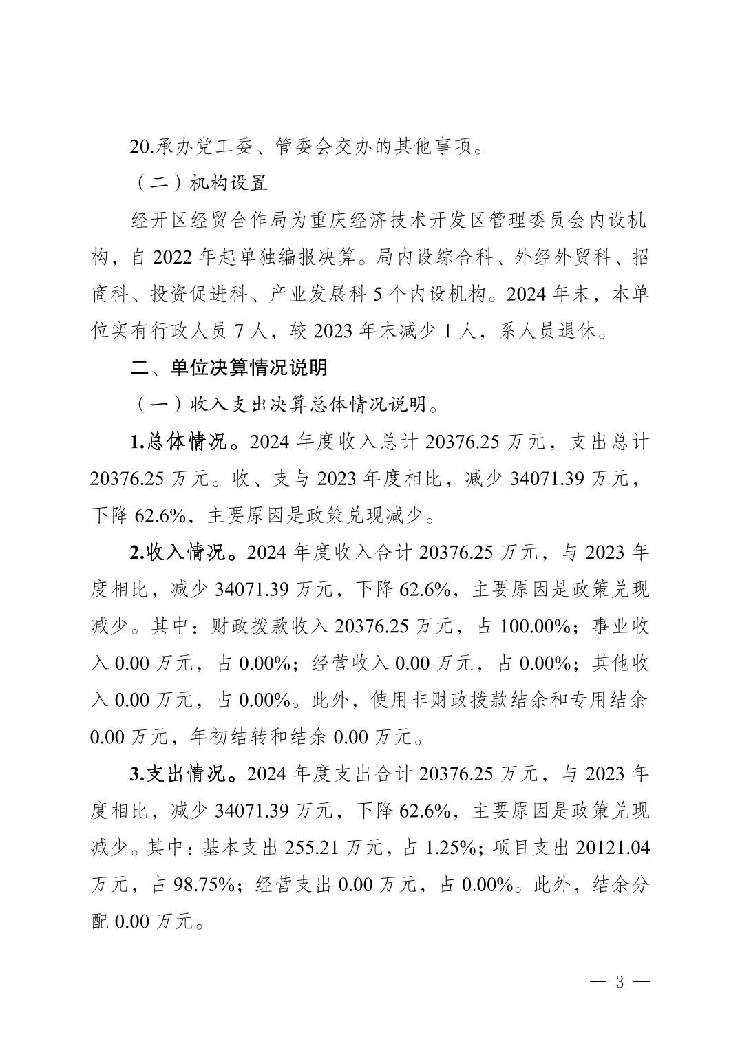 重庆经济技术开发区管理委员会经贸合作局2024年度决算公开说明
