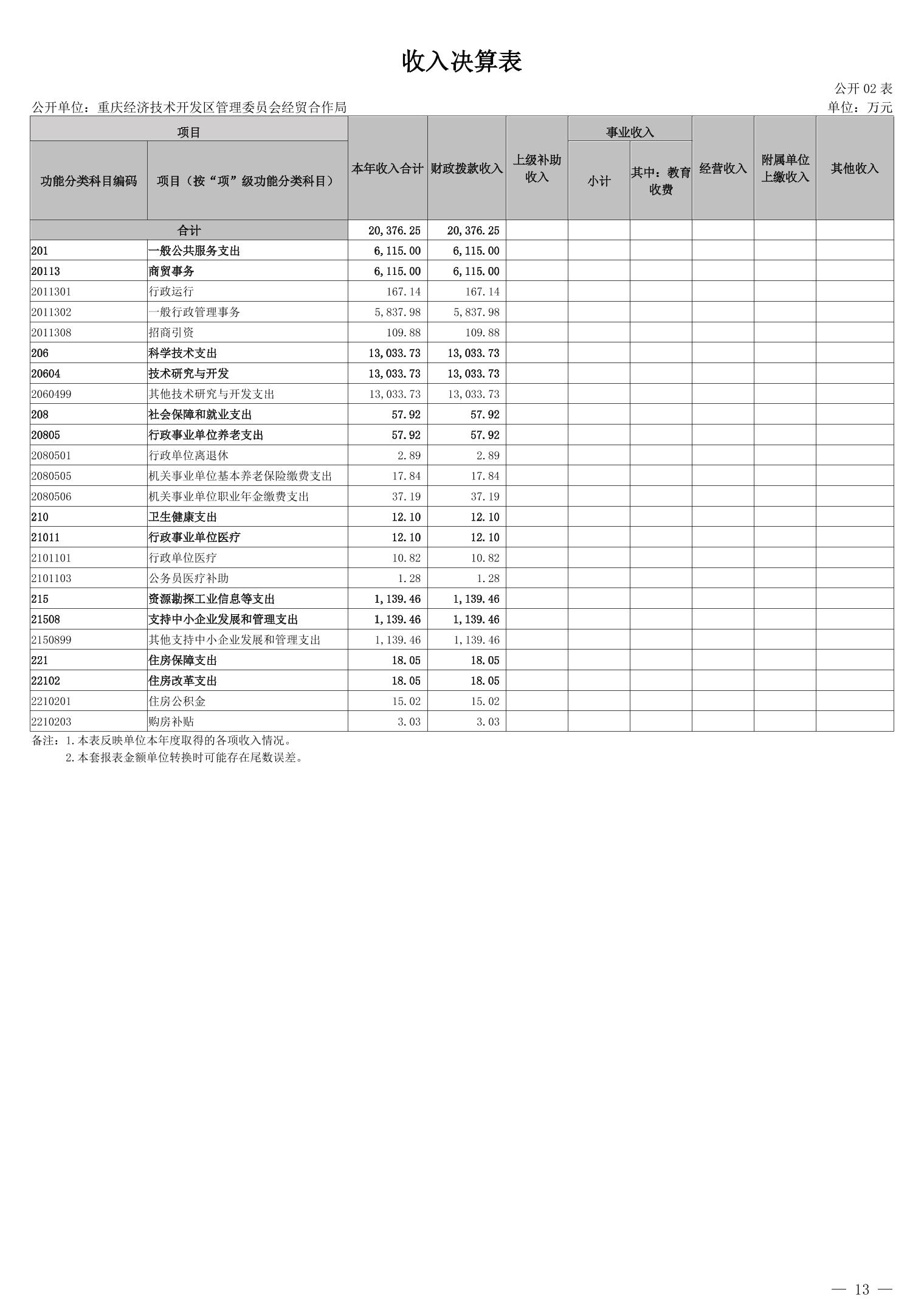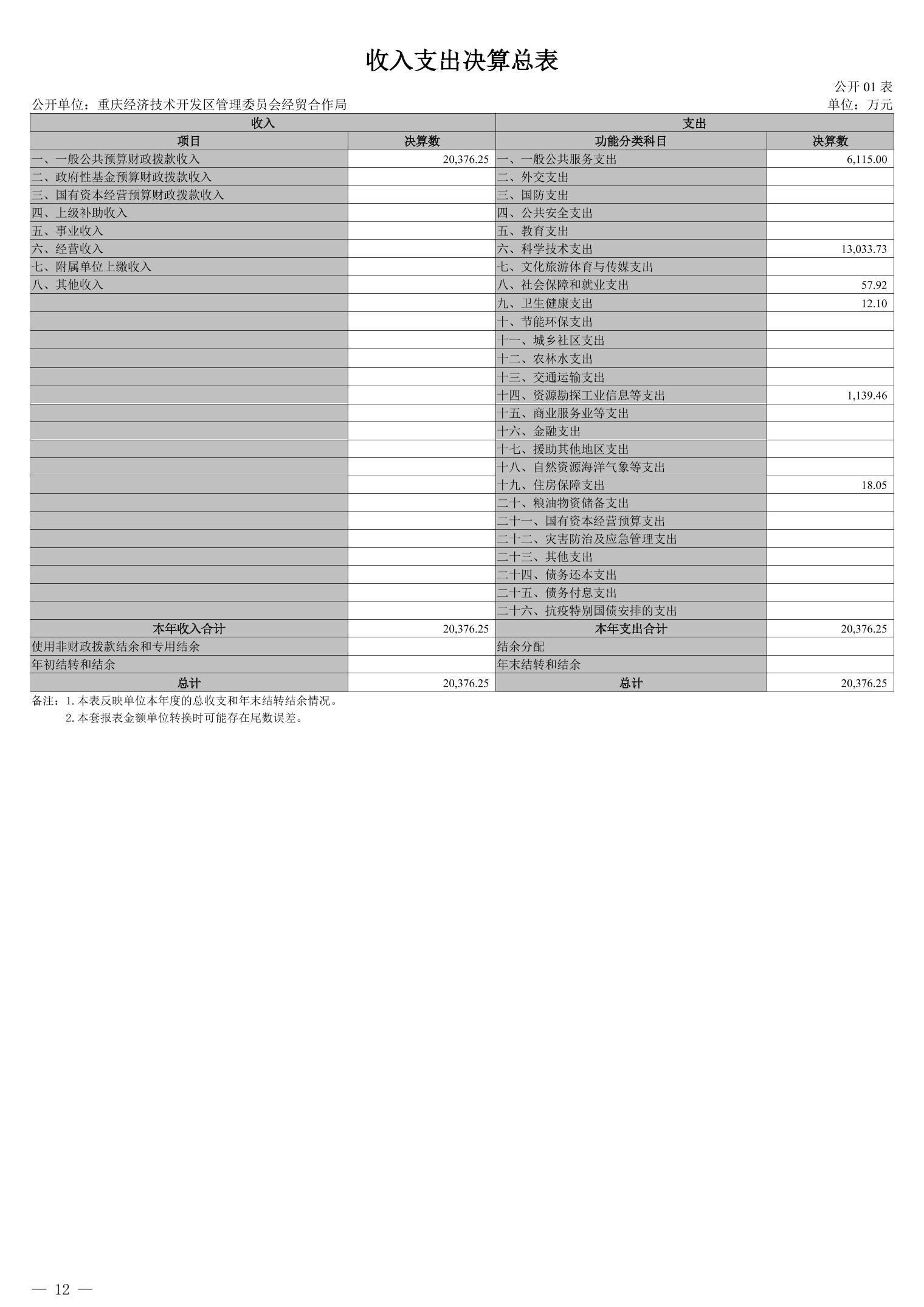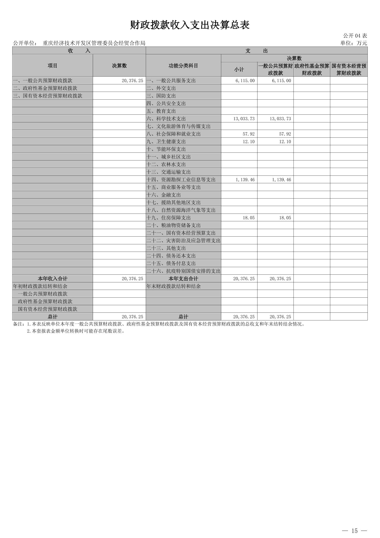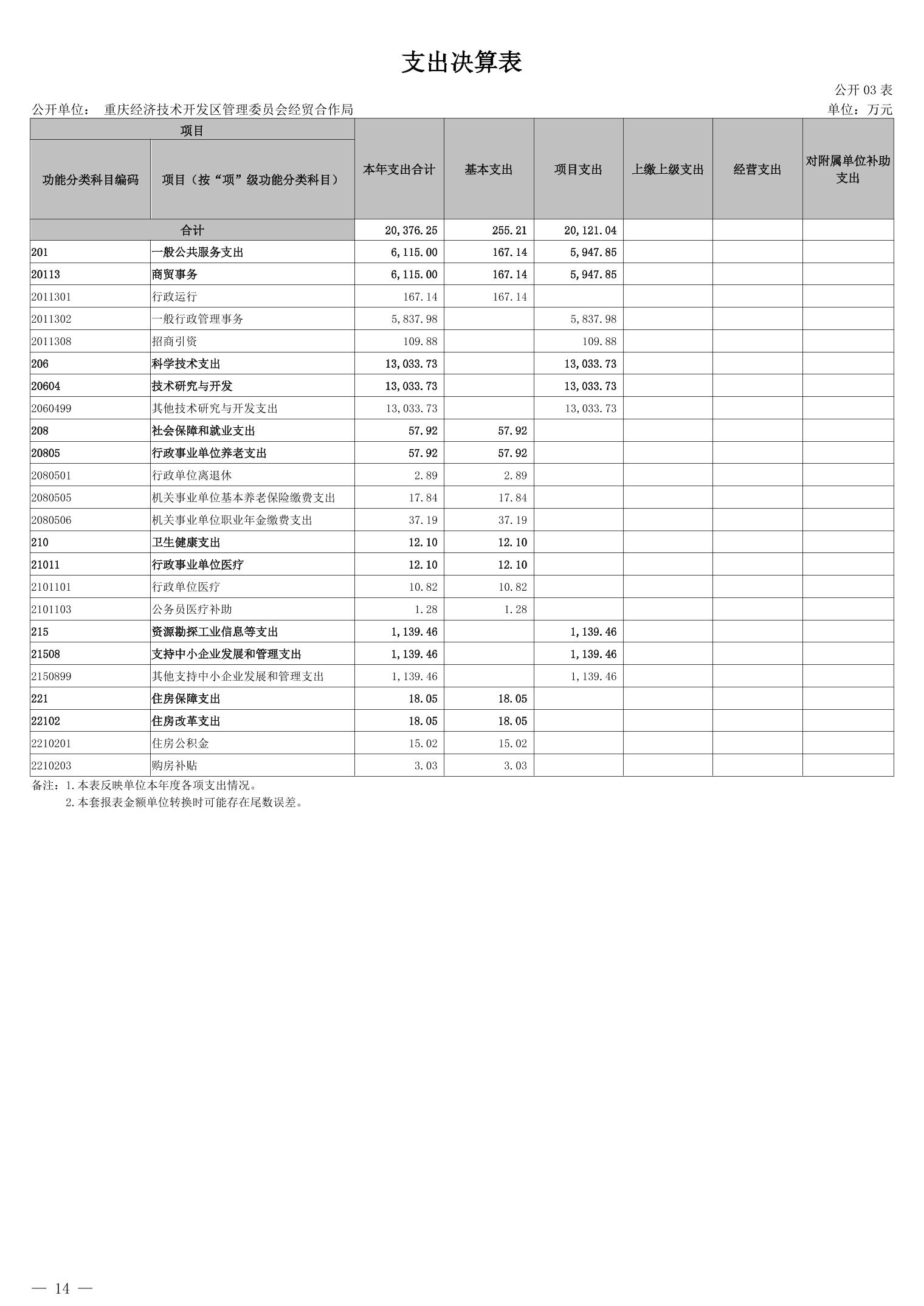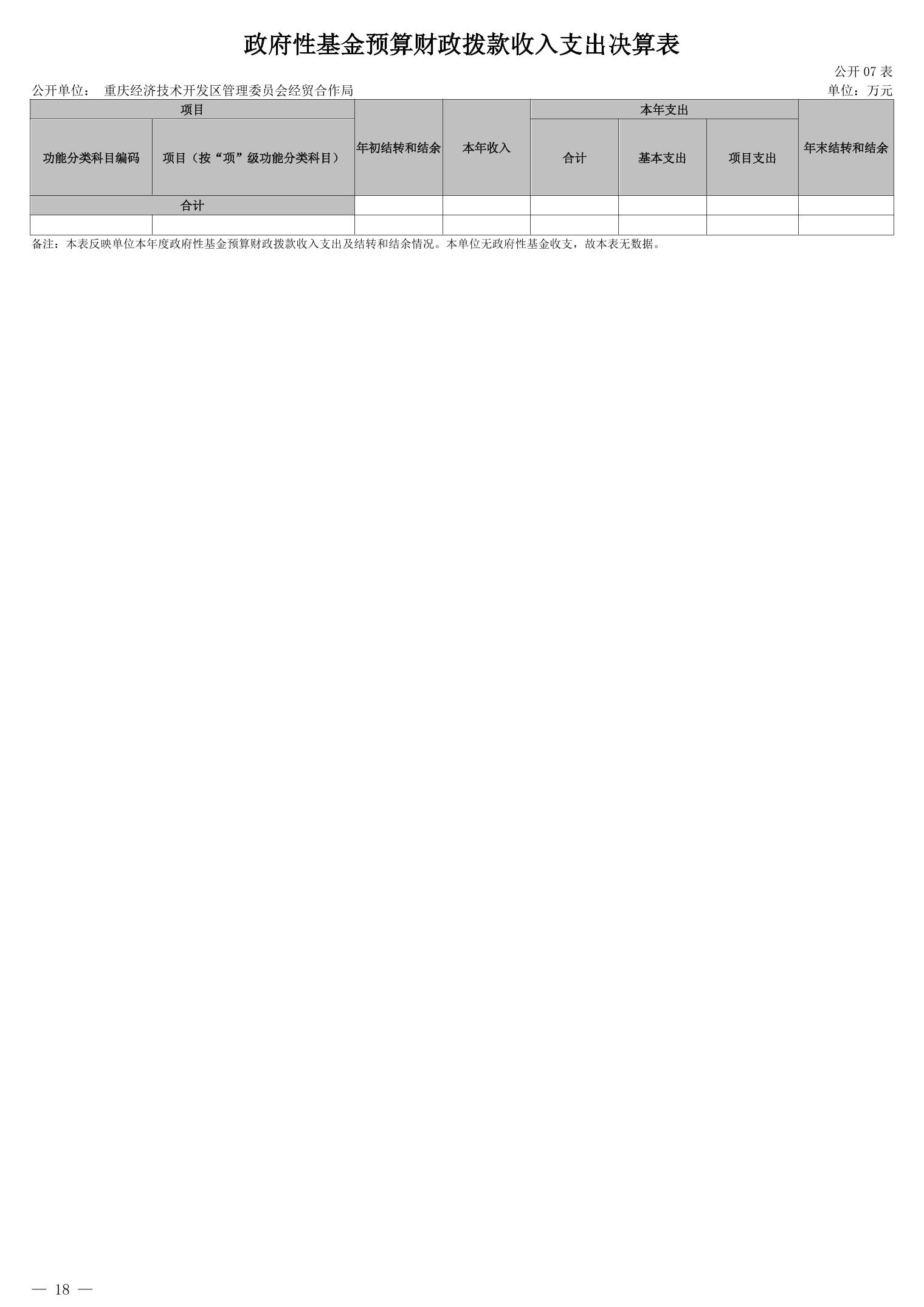 重庆经济技术开发区管理委员会经贸合作局2024年度决算公开说明