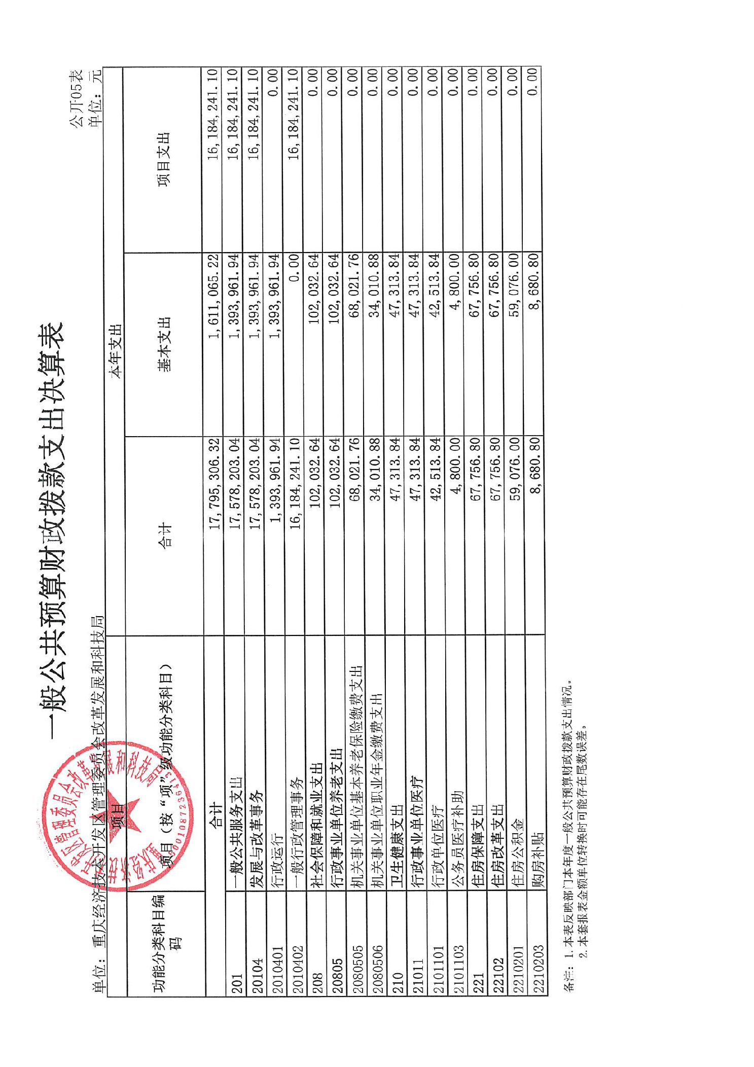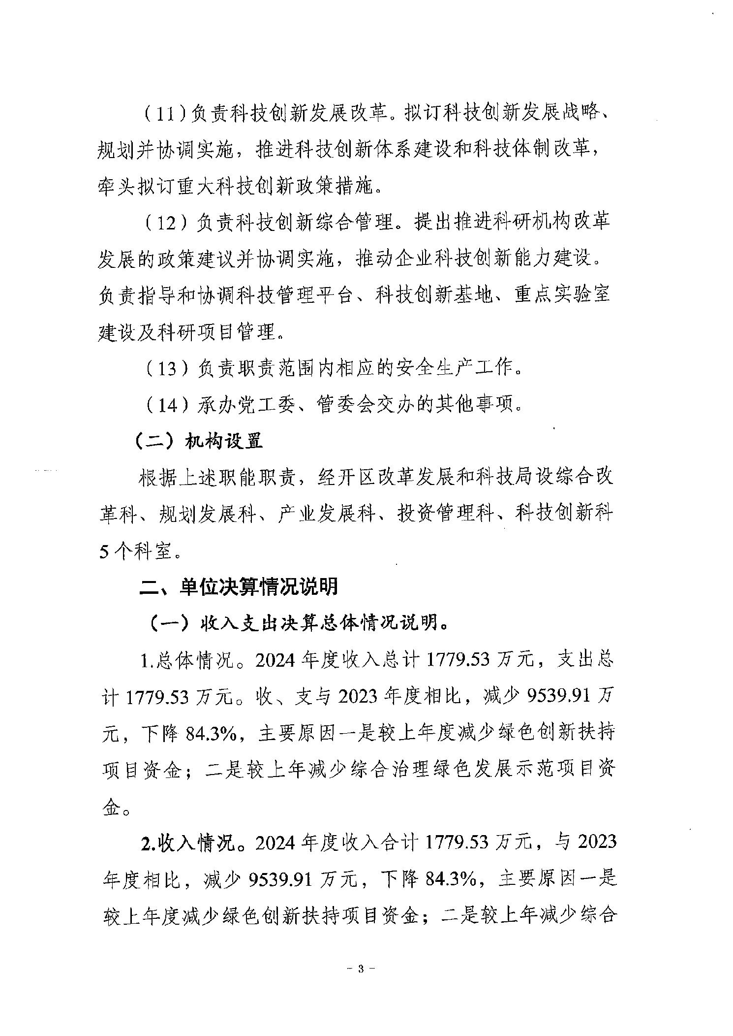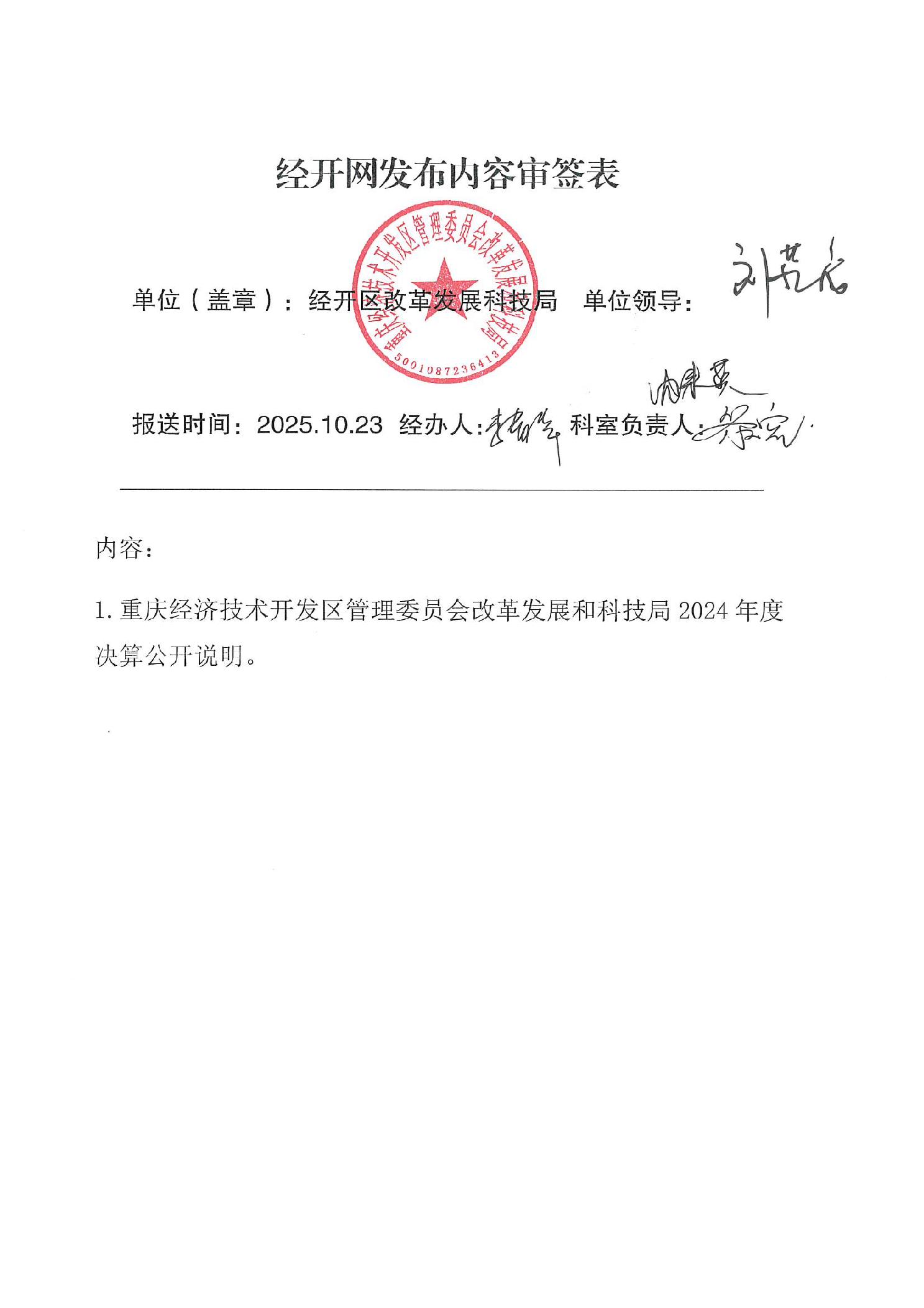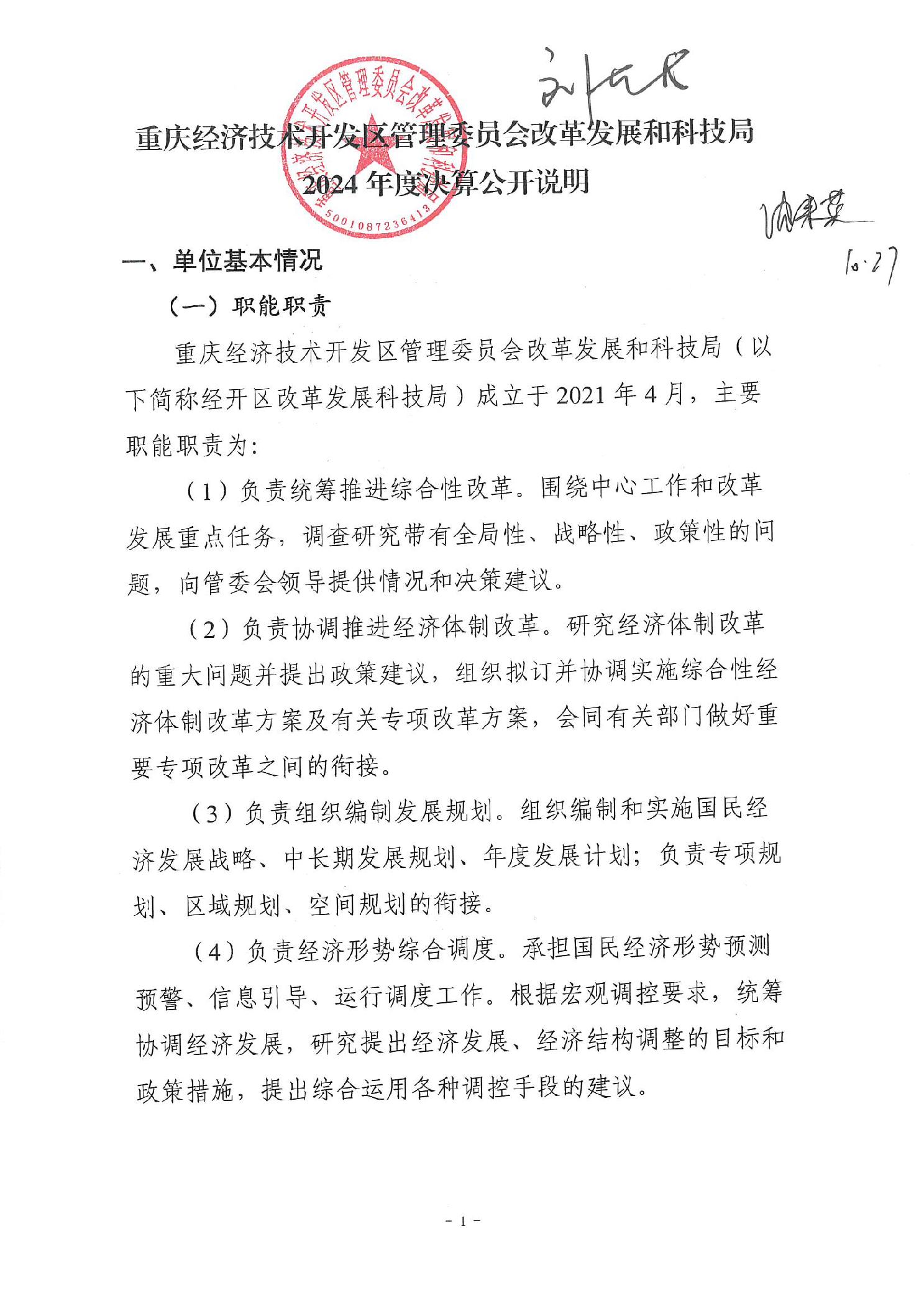 重庆经济技术开发区管理委员会改革发展和科技局2024年度决算公开说明