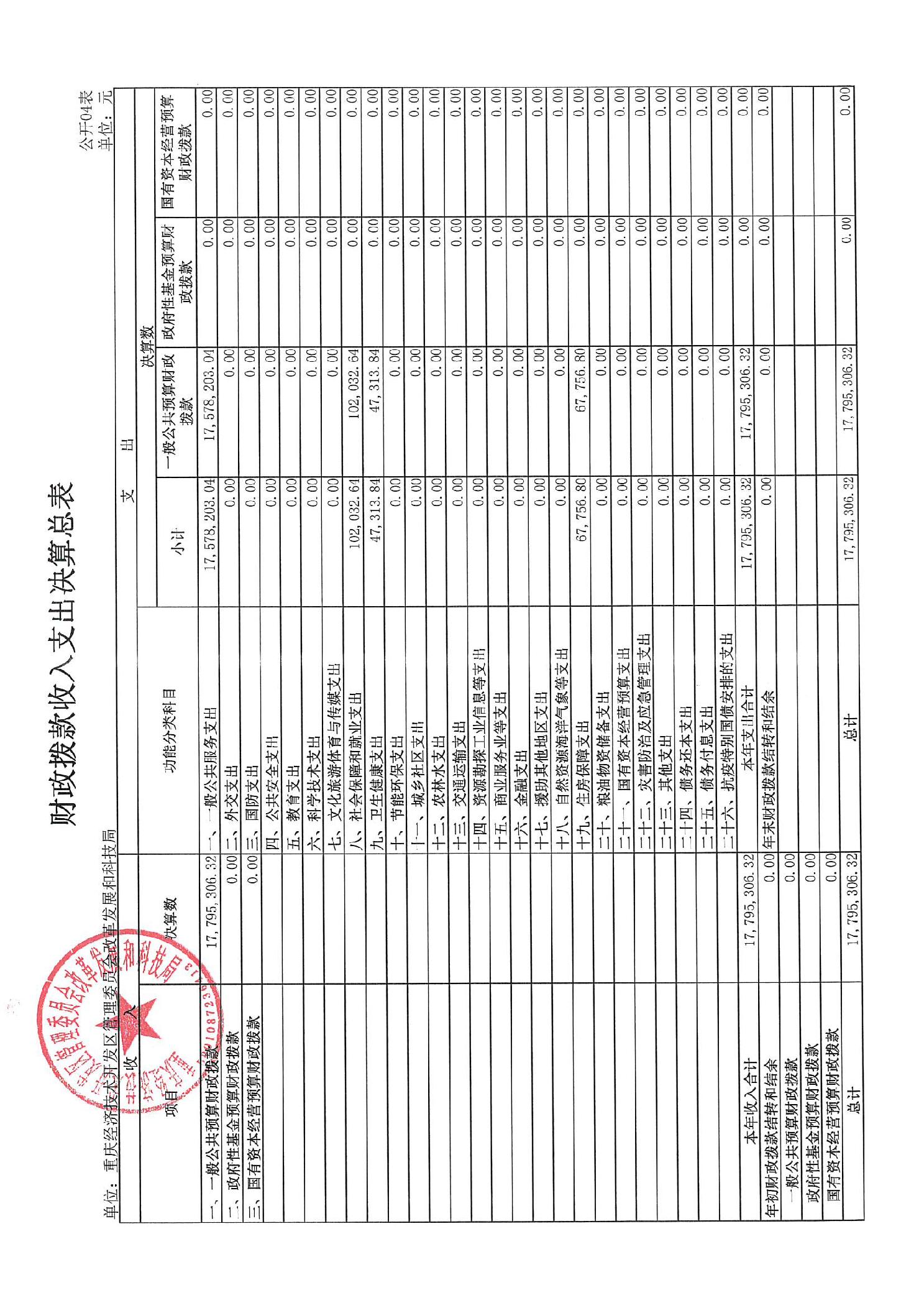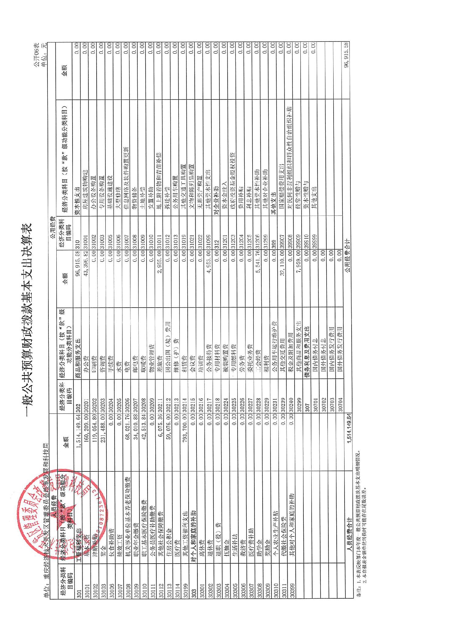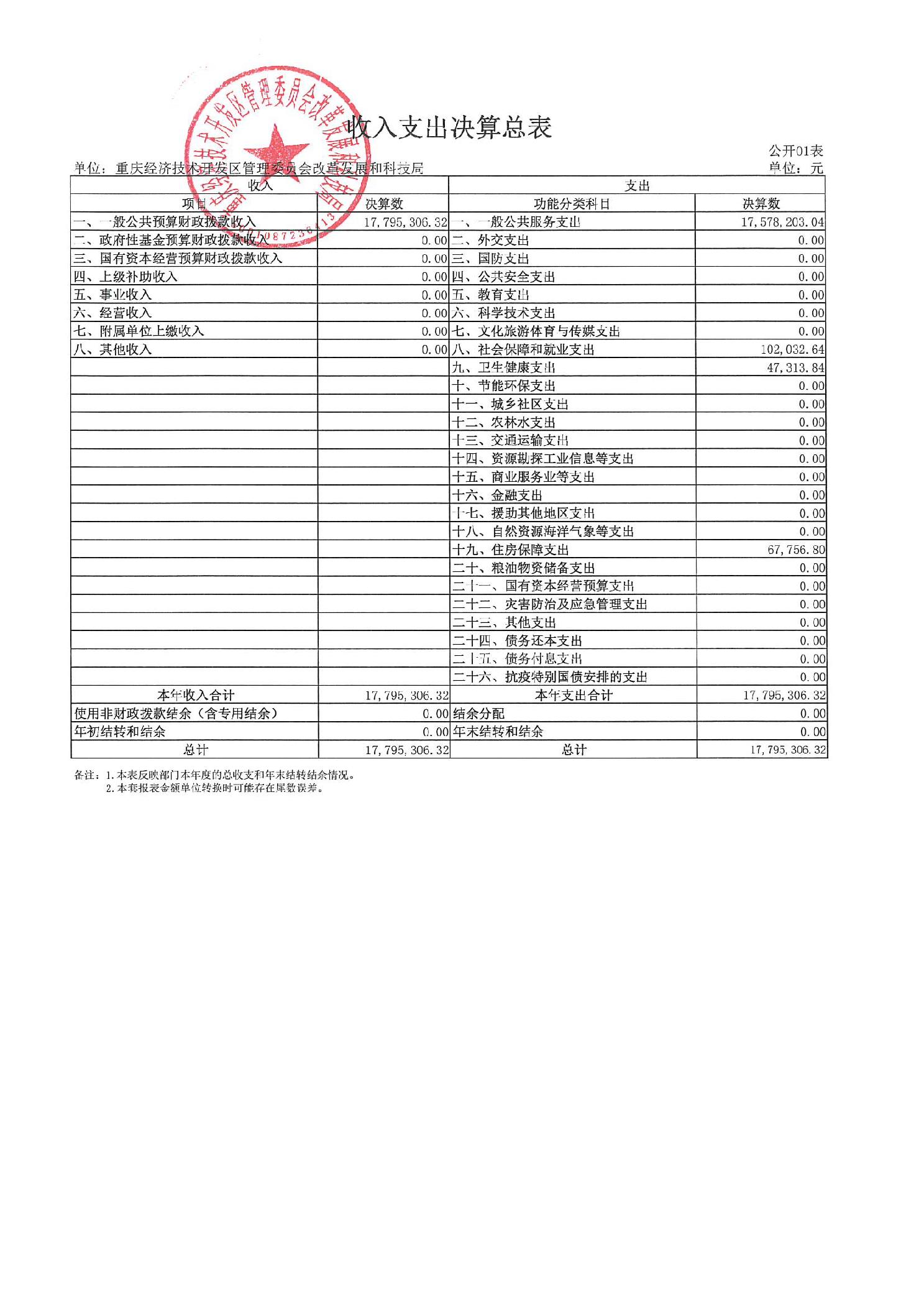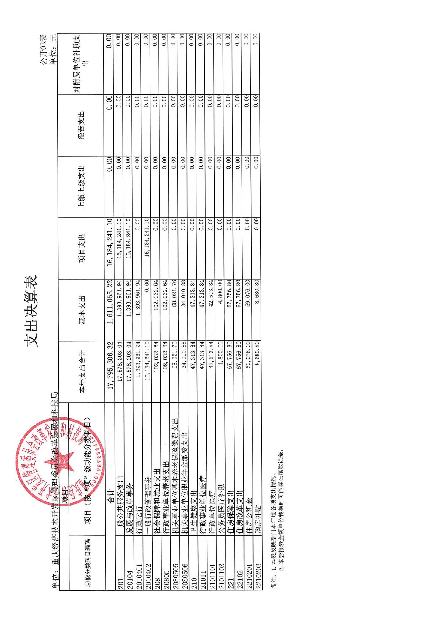 重庆经济技术开发区管理委员会改革发展和科技局2024年度决算公开说明